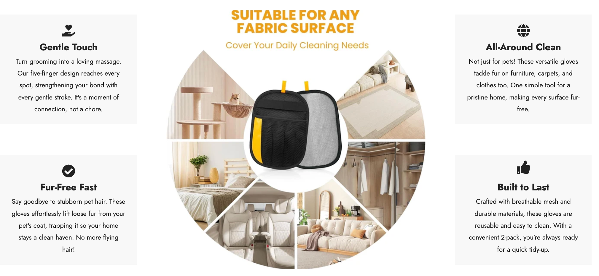 It’s easy to see why our Pet Hair Remover Glove is a favorite among pet owners. Designed to gently remove loose fur with every stroke, it keeps your pet comfortable while helping your home stay clean, tidy, and hair-free.